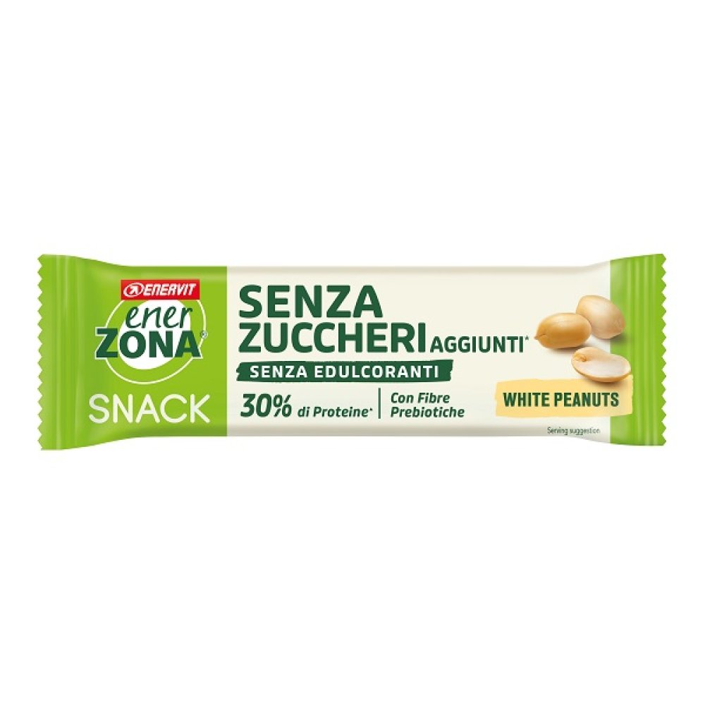 Proteine del latte (20,9%), coperura bianca con latte (19%)[burro di cacao, fibra di cicoria (4%), fibra di cicoria idrolizzata (3,8%), latte in polvere, latte scremato in polvere; emulsionante: lecitine; aoma naturale di vaniglia], fibra di cicoria idrolizzata (11,6%); agente di carica: polidestrosio; collagene idrolizzato; umidificante: glicerolo; arachidi tostate e salate (8%), amido resistente di mais (3,7%), granella di arachidi (2,8%), olio di girasole, fibra di acacia (1,8%), pasta di arachidi (1%), grasso di karitè; emulsionante: lecitine; aroma naturale.