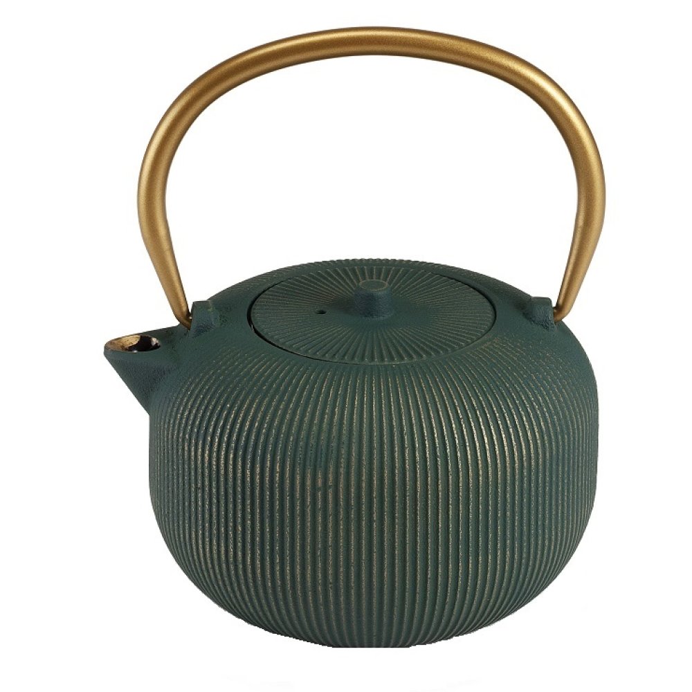 DescrizioneTeiera in ghisa con filtro in acciaio per tisane in foglia.