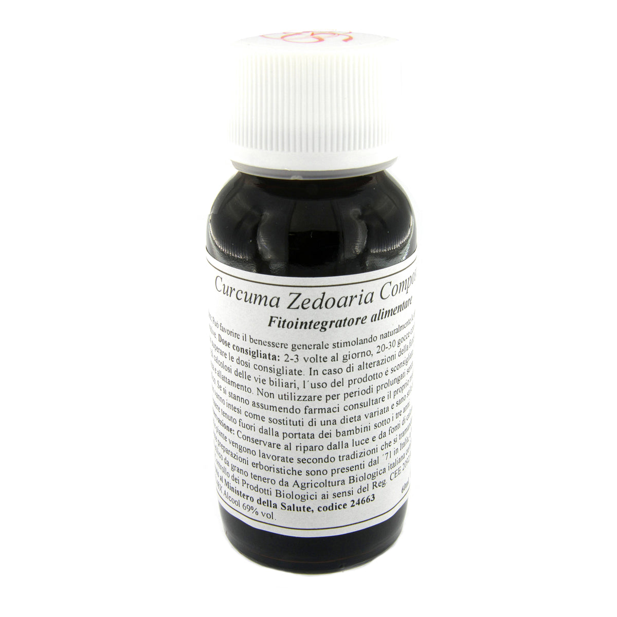 Alcool etilico da grano* tenero, estratto idroalcolico di Cucurma zedoaria.