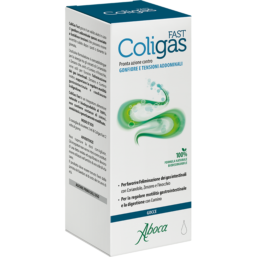 ColiGas Fast gocce è un valido aiuto in caso di gonfiore addominale spesso associato a fastidiose tensioni che possono essere avvertite subito dopo i pasti o durante la giornata.