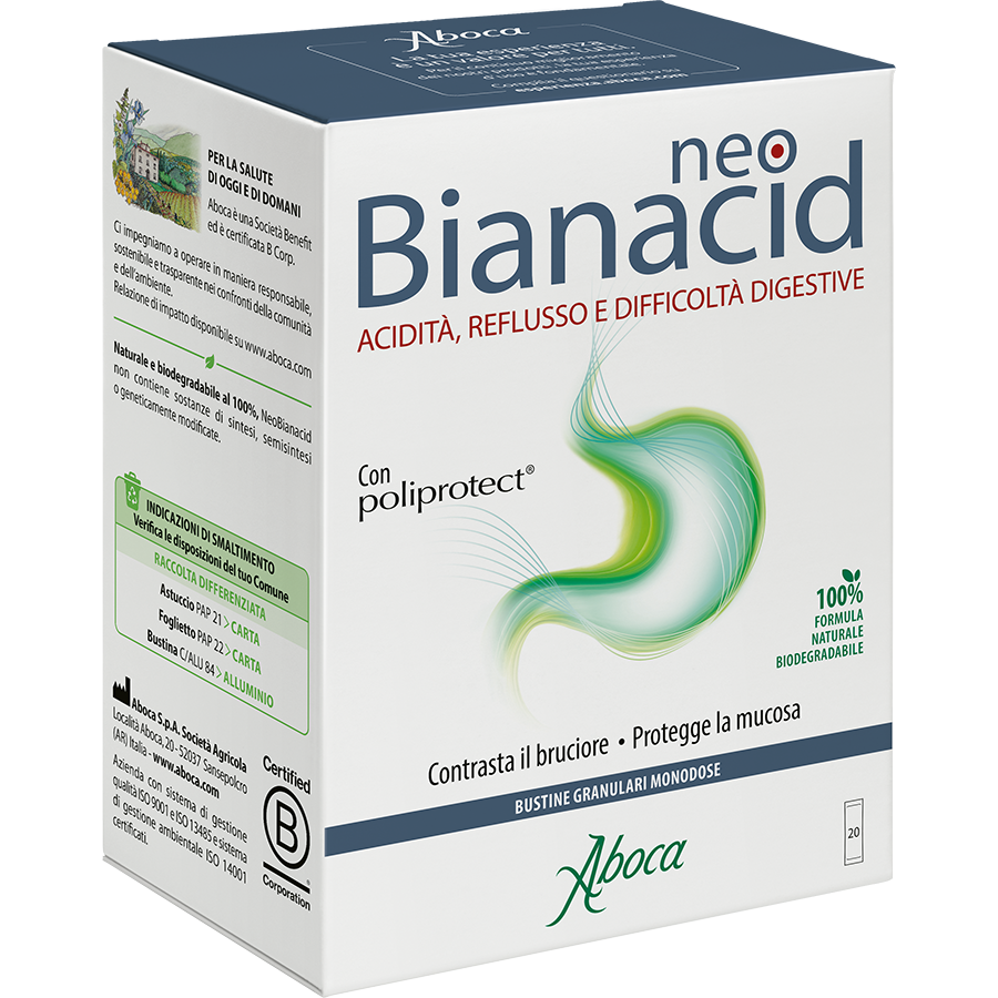 Indicato per il trattamento delle problematiche connesse all'acidità, quali bruciore, dolore, reflusso gastro-esofageo e gastrite.