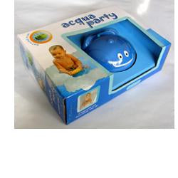 Acqua Party ha forma rotonda, liscia, priva di parti asportabili se non il vano batterie, che comunque va rimosso mediante cacciavite e quindi prevede la presenza del genitore; le espressioni sono sorridenti e simpatiche, e trasmettono un messaggio positivo e rassicurante; il materiale plastico é spesso e di ottima qualità; i colori brillanti, allegri, sono coerenti con i soggetti cui si riferiscono, quindi educativi, e realizzati mediante vernici completamente atossiche.