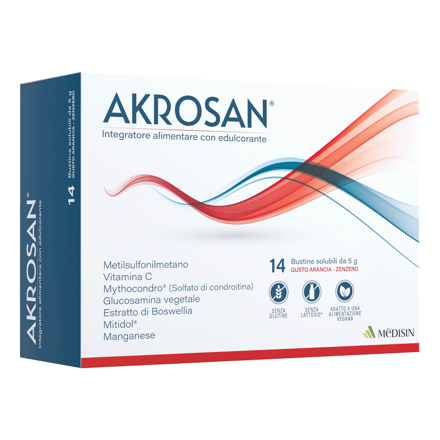 Integratore alimentare a base di metilsulfonilmetano (MSM), Mythocondro (solfato di condroitina di origine non animale), glucosamina vegetale, estratto di Boswellia titolato al 10% in AKBA, Mitidol, vitamina C e manganese.