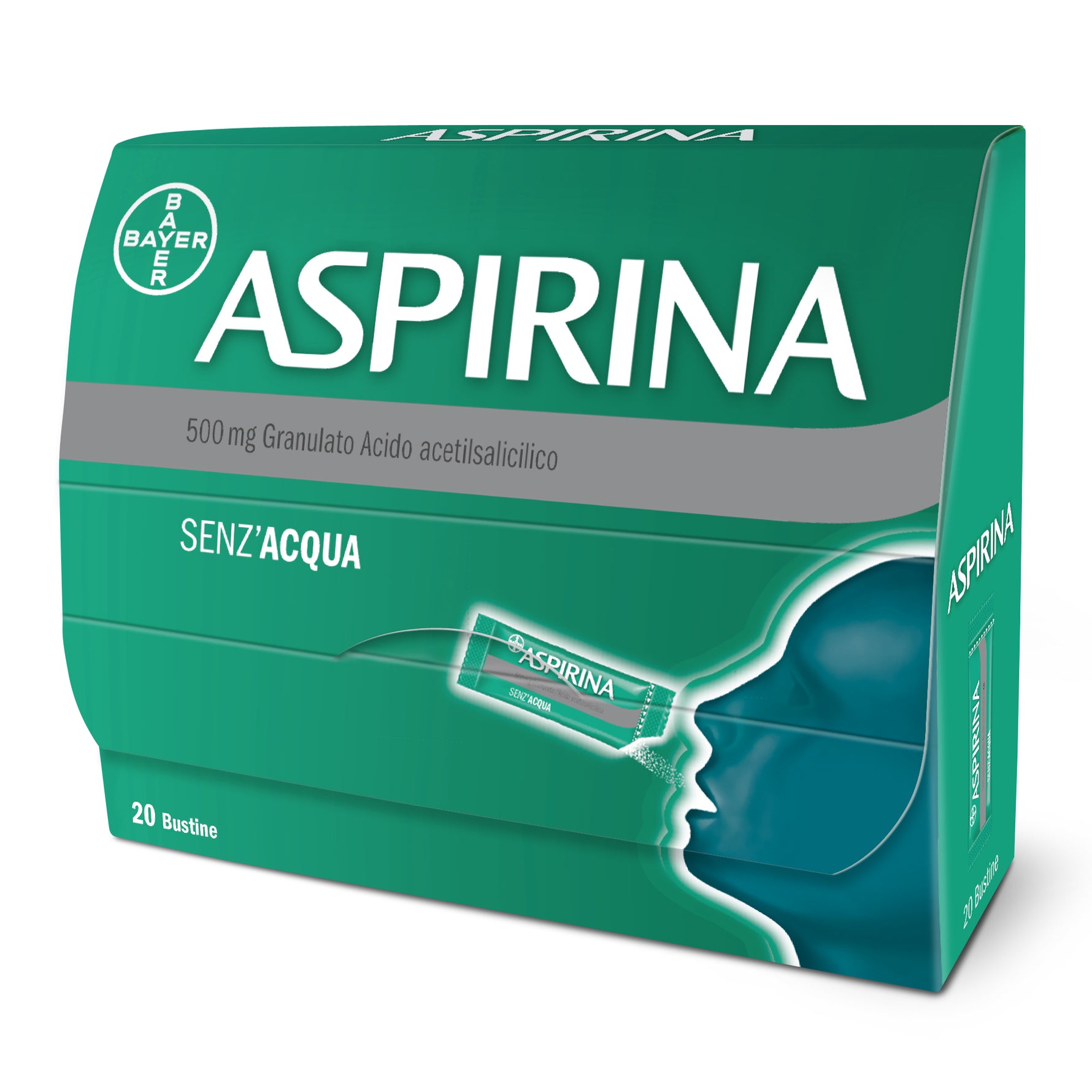 Adulti 1 o 2 bustine di granulato come dose singola, ripetendo, se necessario, la dose ad intervalli di 4–8 ore fino a 2–3 volte al giorno. Non superare mai il dosaggio massimo di 2 bustine 3 volte al giorno (max 6 bustine al dì). Aspirina 500 mg granulato può essere posta direttamente sulla lingua. Si dissolve con la saliva questo ne consente l’impiego senza acqua. L’uso del prodotto è riservato ai soli pazienti adulti. Utilizzare sempre il dosaggio minimo efficace ed aumentarlo solo se non è sufficiente ad alleviare i sintomi (dolore o febbre). Non superare le dosi consigliate: in particolare i pazienti anziani dovrebbero attenersi ai dosaggi minimi sopraindicati. I soggetti maggiormente esposti al rischio di effetti indesiderati gravi, che possono usare il farmaco solo se prescritto dal medico, devono seguirne scrupolosamente le istruzioni (vedere paragrafo 4.4). Usare il medicinale per il periodo più breve possibile. Non assumere il prodotto per più di 3–5 giorni senza il parere del medico. Consultare il medico nel caso in cui i sintomi persistano. Assumere il medicinale preferibilmente dopo i pasti principali o, comunque, a stomaco pieno. Popolazione pediatrica Aspirina 500 mg granulato non è indicato per l’uso nella popolazione pediatrica (vedere paragrafo 4.4).