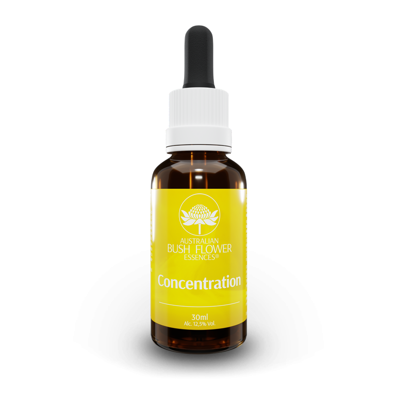 Concentration di Australian Bush Flower Essences è un'essenza floreale combinata che supporta nello studio, nei momenti lavorativi o nel quotidiano in cui è necessaria attenzione e focalizzazione. Questa essenza aiuta sia nei momenti di surmenage che nella routine, quando si sperimenta meno chiarezza e in caso di ricordi confusi. È di supporto per chi manifesta confusione e facilità a distrarsi, favorendo concentrazione e lucidità mentale. Il preparato acquoso floreale è realizzato secondo la tecnica tradizionale di preparazione delle essenze floreali, finalizzata ad imprimere l'informazione energetica dei fiori australiani.