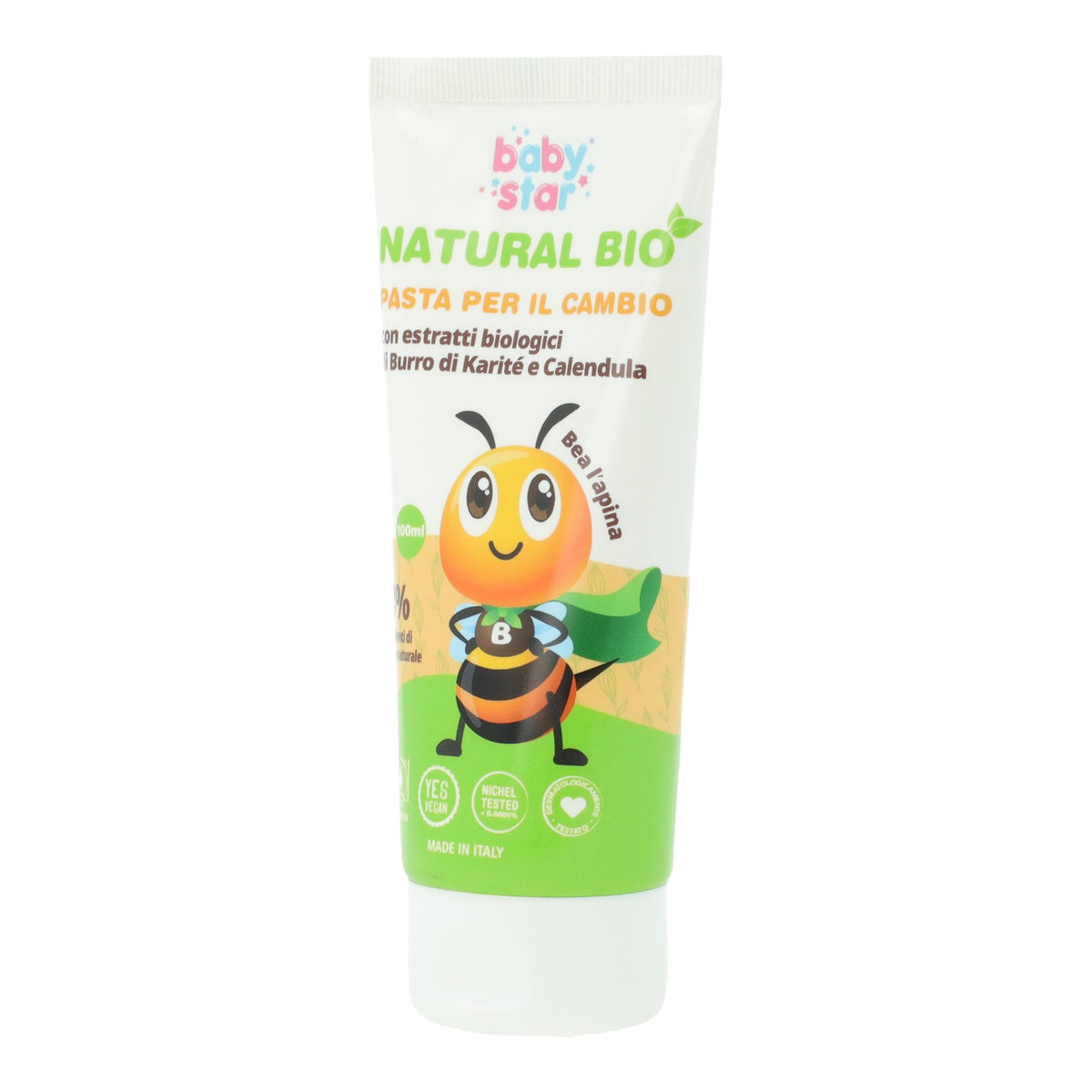 Pasta cambio protettiva all’ossido di zinco. Grazie alla presenza di burro di karité ed estratto di calendula biologico aiuta a prevenire irritazioni e arrossamenti che possono essere causati dai pannolini.