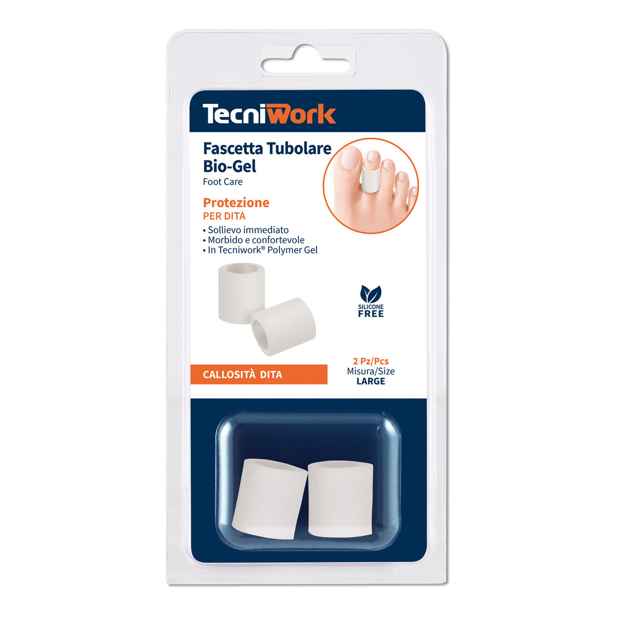 fascetta tubolare per dita in morbido Tecniwork Polymer Gel. Sottile ed anatomica. L'olio minerale rilasciato gradualmente dal gel effettua un'azione emolliente sulla pelle e sulle callosità facilitandone la rimozione.