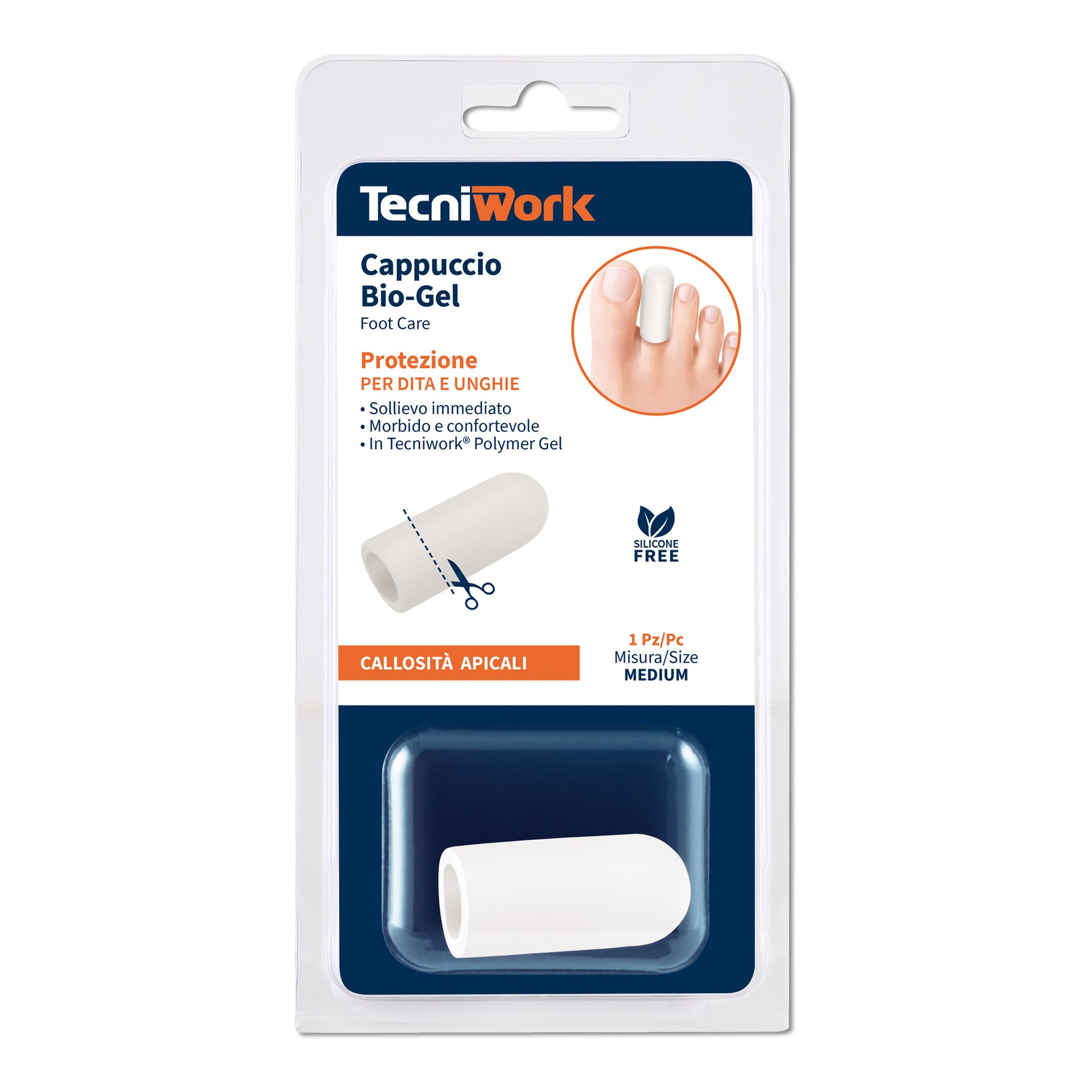 protezione per dita in morbido Tecniwork Polymer Gel. Sottile ed anatomico non crea ingombro e si adatta ad ogni tipo di calzatura. L'olio minerale rilasciato gradualmente dal gel effettua un'azione emolliente sulla pelle e sulle callosità facilitandone la rimozione.