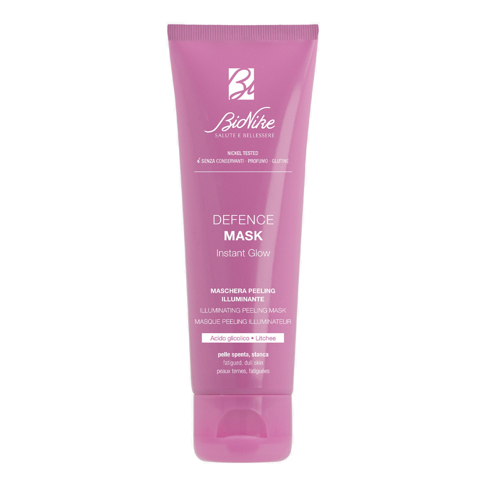 Maschera a risciacquo formulata con un mix esclusivo di acido glicolico ed estratto di litchee,per una duplice azione esfoliante ed antiossidante.