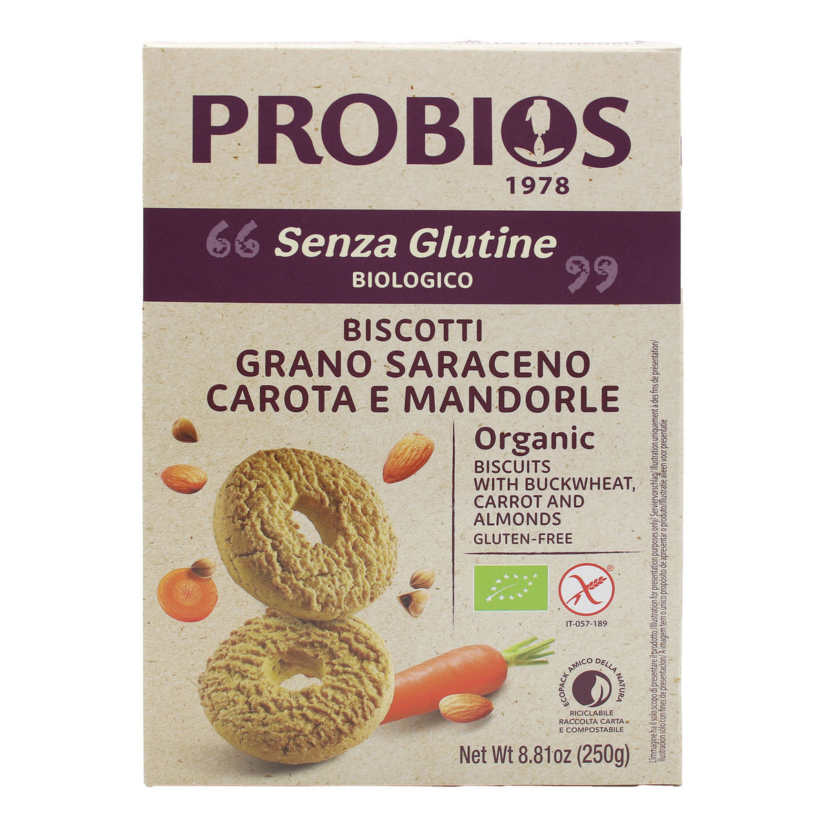 *zucchero di canna, *farina di grano saraceno, *uova, *olio di semi di girasole, *amido di riso, *amido di mais, *farina di mais, *farina di riso, *purea di carota, *farina di mandorle tostate, agenti lievitanti (tartrato monopotassico, carbonato acido di sodio, carbonato acido di ammonio), sale, addensante: gomma di guar, aroma naturale, antiossidante: *estratti di rosmarino.