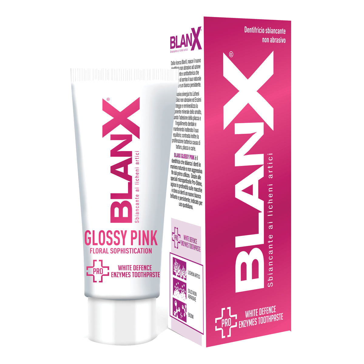Grazie alle particolari microparticelle Pro-Shine, BlanX Glossy Pink agisce in profondità sulle macchie e dona ai denti un nuovo bianco brillante e persistente.