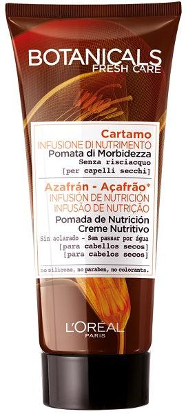 Infusione di nutrimento, con olio di cartamo, per ammorbidire e nutrire i capelli secchi.Associazione inedita di oli di cartamo, ricco in acidi grassi essenziali, di oli di soia e cocco in una formula trattamento che rimpolpa le fibre secche e nutre profondamente. Pomata di morbidezza, la cui formula è stata completata da un olio di semi di lino puro, un ingrediente naturale rinnovabile, riconosciuto per la sua abilità di polimerizzare a contatto con l'aria, creando in questo modo una copertura idro-repellente. Nutre, ammorbidisce e disciplina la capigliatura.