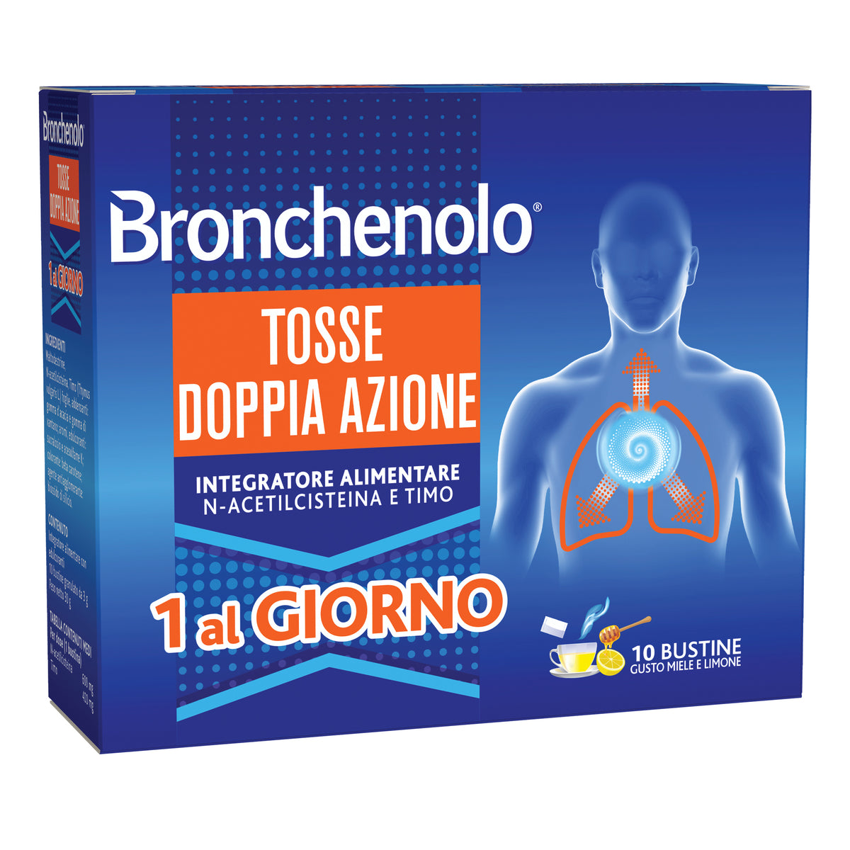 Integratore alimentare a base di N-acetilcisteina con timo, che favorisce l’espettorazione ed aiuta contro la tosse grassa e contro la tosse secca. Una sola bustina al giorno è sufficiente a coprire l’arco delle 24h.