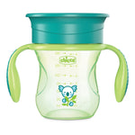 Tazza per bambini dai 12 mesi, che aiuta a familiarizzare con il bicchiere, ideata per una bevuta a 360°, dotata di una membrana in silicone che si attiva solo quando il bambino beve.