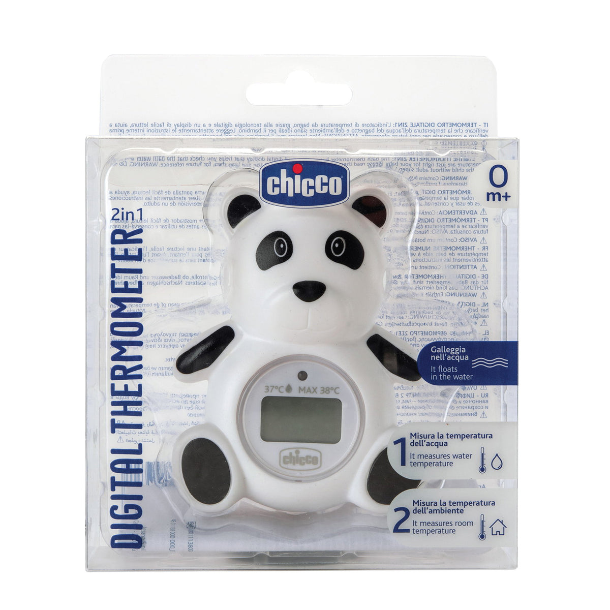 Con tecnologia digitale e un grande schermo per una facile lettura. Il termometro a forma di panda galleggia nell'acqua e intrattiene il bambino mentre la mamma controlla la temperatura. Può essere utilizzato anche per misurare la temperatura ambiente.