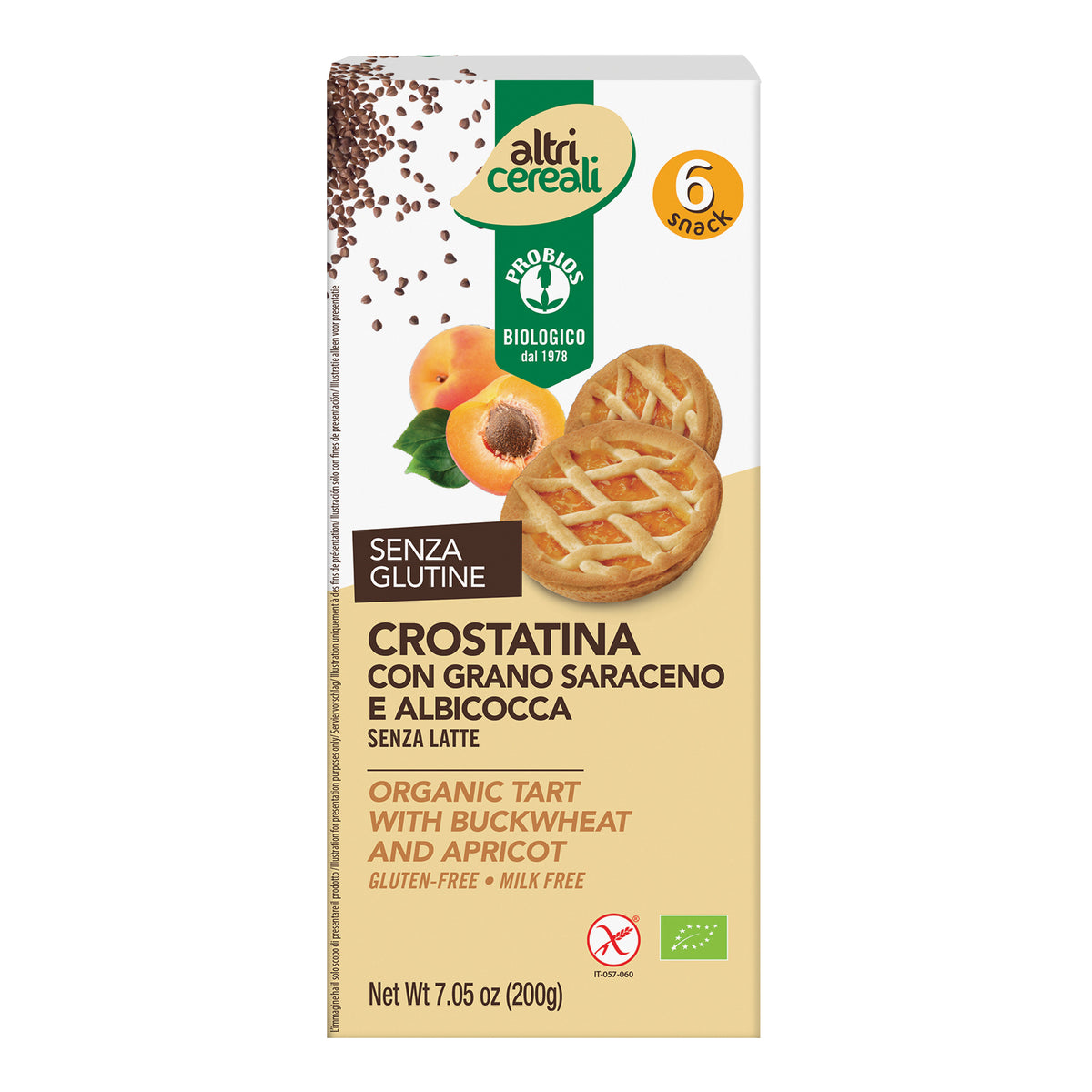 confettura di albicocca (*zucchero di canna, *purea di albicocca, gelificante: pectine, correttore di acidità: acido citrico), *farina di grano saraceno, *olio di palma, *farina di riso, *fecola di patate, *zucchero di canna, *sciroppo di mais, *amido di mais, *uova, *farina di ceci tostata, *fibra di mela, agenti lievitanti (tartrati di potassio, carbonati di sodio, carbonati di ammonio), sale, *amido di riso, *aroma naturale, addensante: gomma di guar.