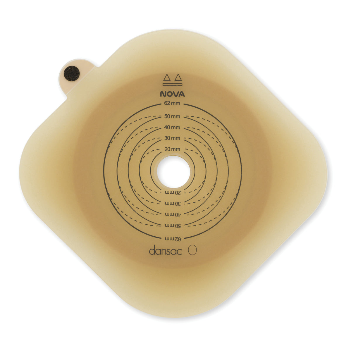 Dansac Nova 2 Placca è un dispositivo medico da utilizzare con le Sacche NovaLife 2 e Nova 2 per Colostomia, Leostomia e Urostomia. La placca a spessore differenziato, con più idrocolloide al centro, garantisce una migliore adesione. Ultraflessibile è di forma romboidale e formata da: anello per aggancio alla sacca in plastica trasparente; flangia flottante; supporto placca in materiale di sintesi traspirante EMA; pellicola di protezione trasparente, scrivibile in poliestere.
