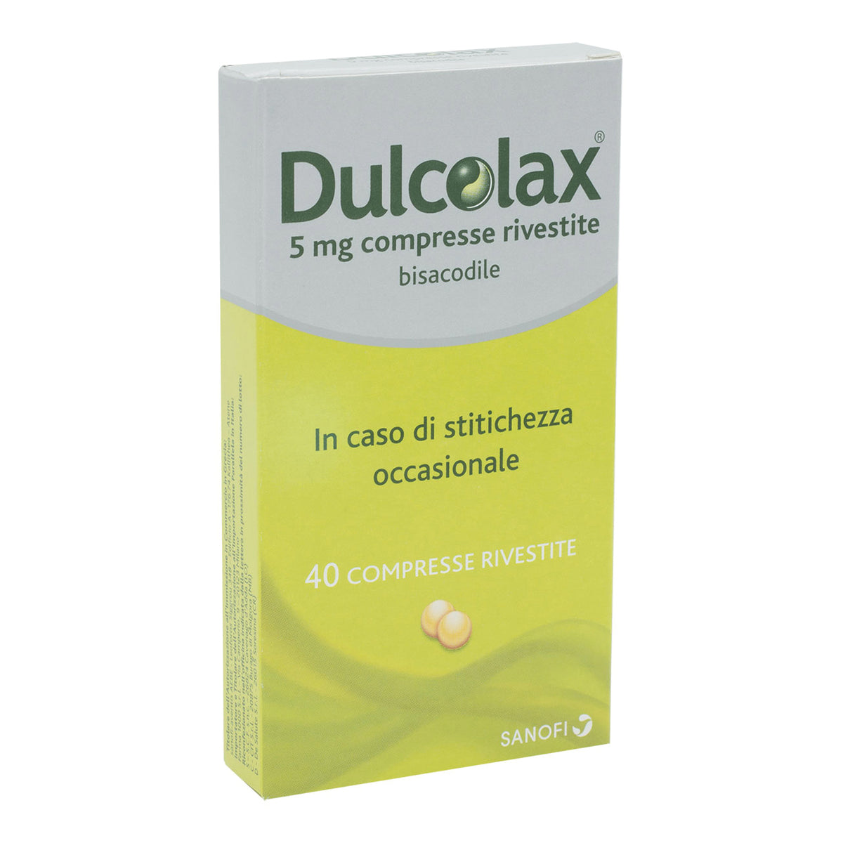 PosologiaCOMPRESSE RIVESTITE - Adulti: 1-2 compresse rivestite al giorno. Popolazione pediatrica - Bambini oltre i 10 anni: 1-2 compresse rivestite al giorno. - Bambini di età compresa fra 2 e 10 anni: 1 compressa rivestita al giorno. È consigliabile iniziare con la dose minima prevista. La dose può essere poi aumentata, fino alla dose massima raccomandata, per una regolare evacuazione delle feci. La dose massima giornaliera non deve essere mai superata. Istruzioni per l’uso Assumere le compresse rivestite preferibilmente la sera per determinare un’evacuazione la mattina seguente (dopo circa 10 ore). Con la somministrazione al mattino, a digiuno, l’effetto si ottiene dopo cinque ore circa. Le compresse rivestite non devono essere somministrate insieme a prodotti che riducono l’acidità del tratto gastrointestinale superiore, quali latte, antiacidi (per esempio bicarbonato) o inibitori della pompa protonica. Le compresse rivestite vanno deglutite intere. Ingerire insieme ad una adeguata quantità di acqua (un bicchiere abbondante). Una dieta ricca di liquidi favorisce l’effetto del medicinale. SUPPOSTE - Adulti: 1 supposta adulti (10 mg) al giorno. Popolazione pediatrica - Bambini oltre i 10 anni: 1 supposta adulti (10 mg) al giorno. - Bambini di età compresa fra 2 e 10 anni: 1 supposta bambini (5 mg) al giorno. La dose massima giornaliera non deve essere mai superata. I bambini di età pari o inferiore ai 10 anni con stitichezza cronica o persistente devono assumere Dulcolax sotto la supervisione del medico. Dulcolax non deve essere somministrato nei bambini di età inferiore ai due anni. Istruzioni per l’uso L’effetto delle supposte si manifesta di solito in circa 20 minuti (range: 10 - 30 minuti). Non superare le dosi consigliate. I lassativi devono essere usati il meno frequentemente possibile e per non più di sette giorni. L’uso per periodi di tempo maggiori richiede la prescrizione del medico dopo adeguata valutazione del singolo caso.