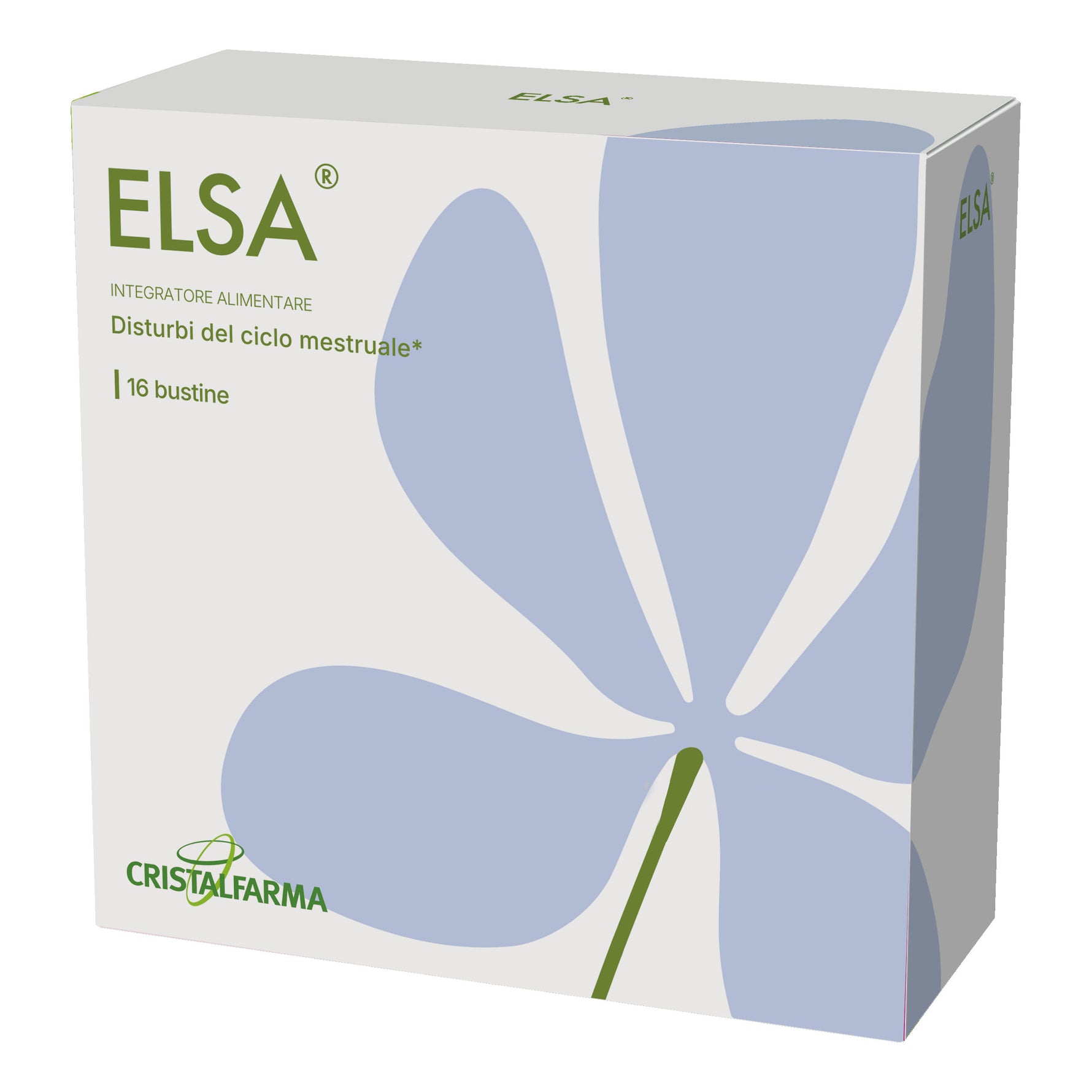 elsa® è un integratore alimentare utile nel favorire la qualità di vita in caso di disturbi del ciclo mestruale. Grazie alla sua formulazione a base di attivi botanici e vitamine (agnocasto, zafferano, melissa, betulla, magnesio e vitamina B6) contrasta i disturbi legati al ciclo mestruale, favorendo il normale tono dell’umore, la riduzione della stanchezza e dell’affaticamento e del drenaggio dei liquidi corporei.