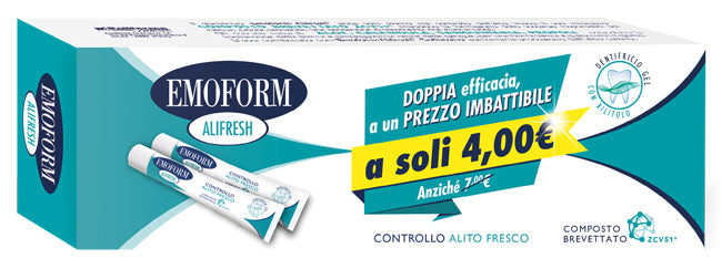 Il dentifricio Emoform Alifresh aiuta ogni giorno nel controllo dell'alito fresco.