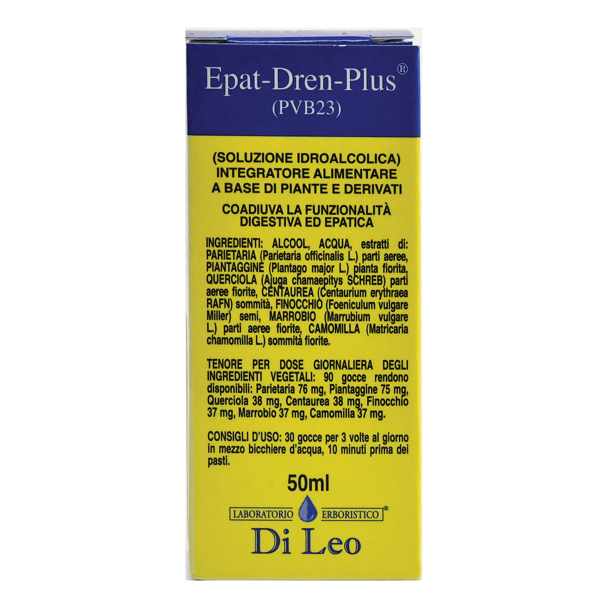 Alcool, acqua, estratti di: parietaria (Parietaria officinalis L.) parti aeree, piantaggine (Plantago major L.) parti aeree fiorite, querciola (Ajuga chamaepitys SCHREB.) parti aeree fiorite, centaurea (Centaurium erythraea Rafn.) parti aeree fiorite, finocchio (Foeniculum vulgare Miller) frutti, marrobio (Marrubium vulgare L.) parti aeree fiorite, camomilla (Matricaria chamomilla L.) parti aeree fiorite.