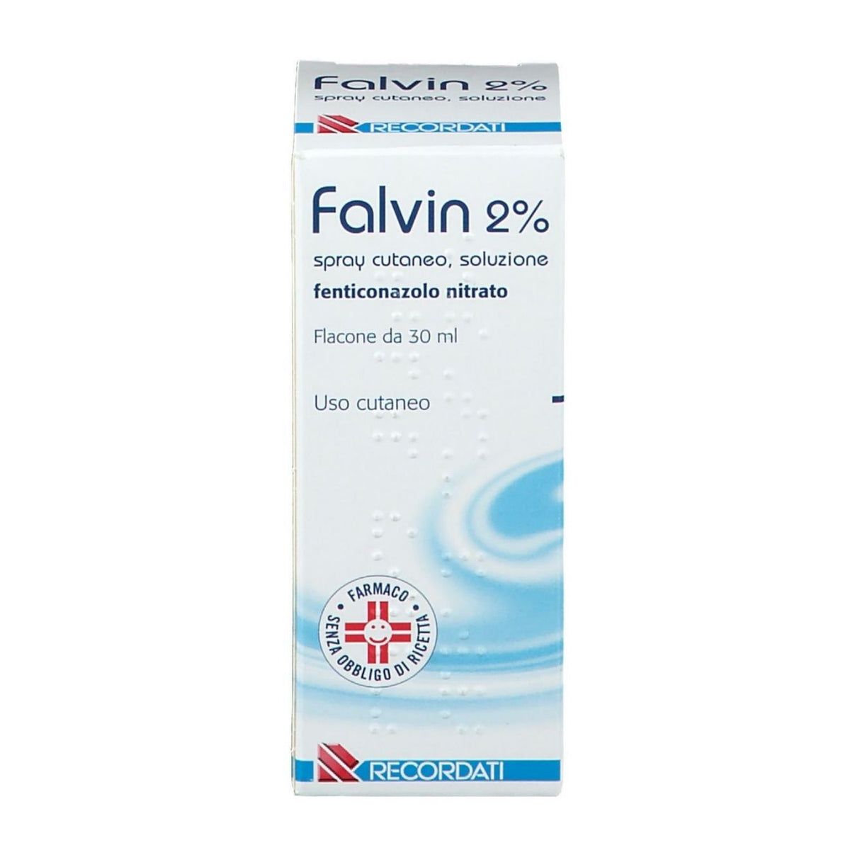 Falvin è un farmaco da banco (OTC) in forma di spray cutaneo contenente fenticonazolo nitrato 2% (20 mg/g). Indicato per dermatomicosi da dermatofiti, candidiasi cutanee, pityriasis versicolor, otomicosi, eritrasma e micosi con superinfezioni batteriche. Lo spray cutaneo è indicato per le localizzazioni al cuoio capelluto e per le zone cutanee ricoperte da peli. Inoltre, è di facile e comodo impiego per le micosi estese e per le zone difficilmente raggiungibili. Non unge, non macchia ed è facilmente asportabile con acqua.