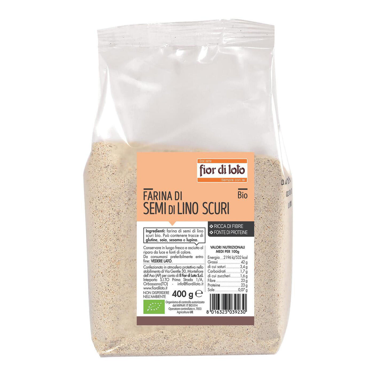 La farina di semi di lino scuri è ottenuta dalla macinazione dei semi di lino. Fonte di proteine e ricca di fibre, mantiene le caratteristiche intrinseche dei semi.