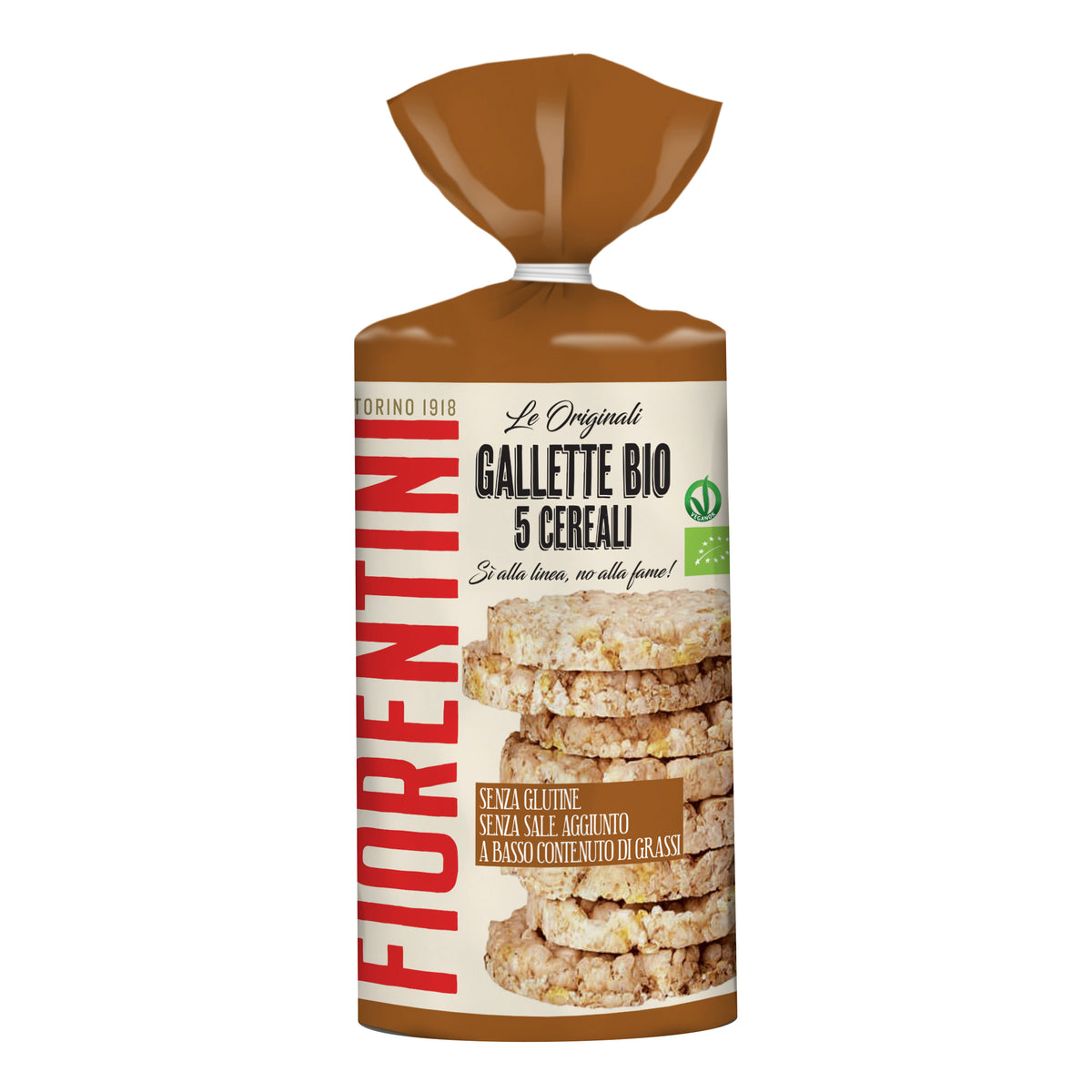 Gallette ai 5 cereali a basso contenuto di grassi da agricoltura biologica senza sale e senza glutine.Formato
