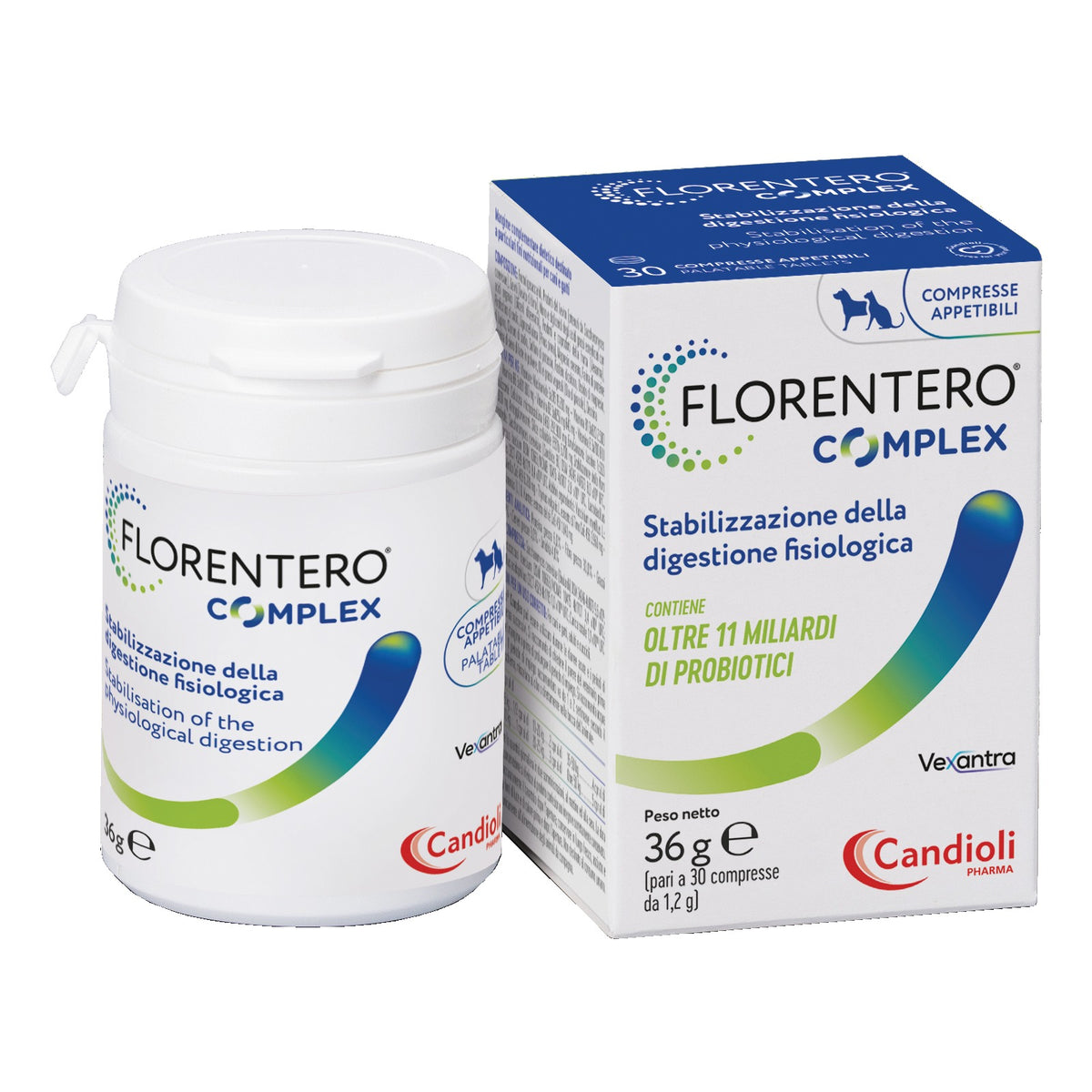 Mangime complementare dietetico per cani e gatti per la stabilizzazione della digestione fisiologica.