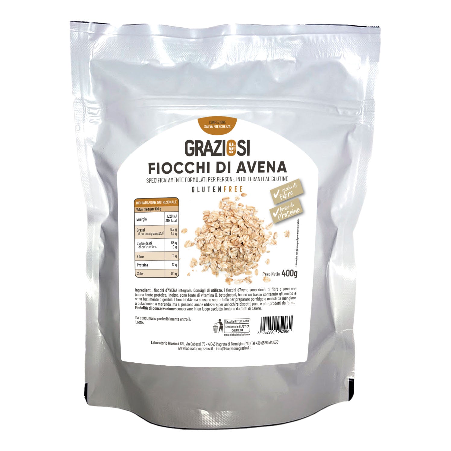 I fiocchi di avena hanno un altissimo valore energetico; contengono avenina e un'alta percentuale di carboidrati e proteine. Inoltre, sono fonte di vitamina B e beta-glucani. Infine, hanno un basso contenuto glicemico e sono facilmente digeribili.