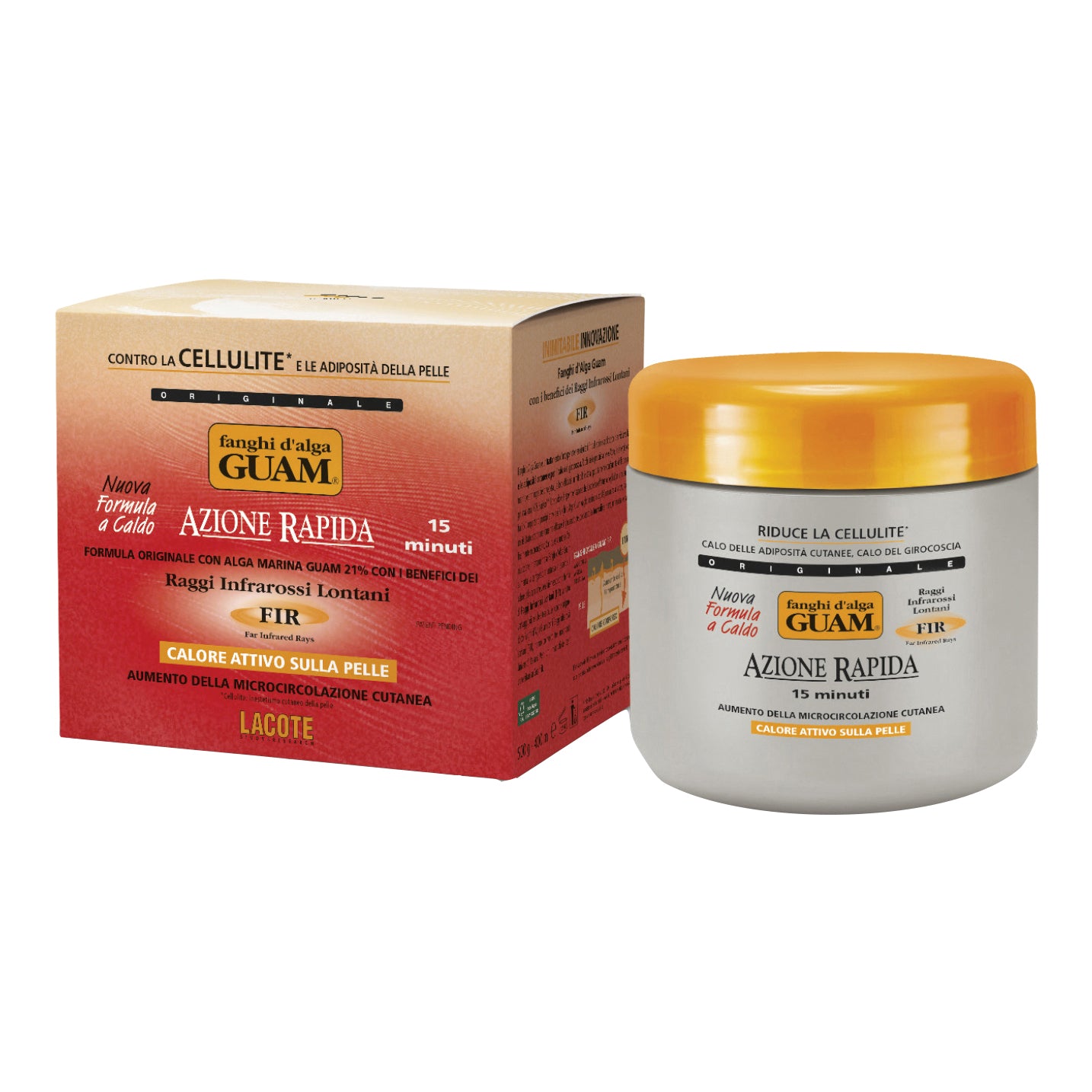 Nuova formula a caldo intenso in 15 minuti, contro la cellulite e le adiposità della pelle. Formula originale con alga marina Guam (21%) e con i benefici dei Raggi Infrarossi Lontani FIR (Far Infrared Rays).