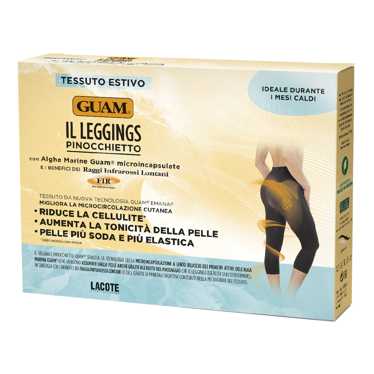 IL LEGGINGS PINOCCHIETTO GUAM® SFRUTTA LA TECNOLOGIA DELLA MICROINCAPSULAZIONE A LENTO RILASCIO DEI PRINCIPI ATTIVI DELL’ALGA MARINA GUAM® (CHE VENGONO ASSORBITI DALLA PELLE ANCHE GRAZIE ALL’AIUTO DEL MASSAGGIO CHE IL LEGGINGS ESERCITA SULL’EPIDERMIDE), IN SINERGIA CON I BENEFICI DEI RAGGI INFRAROSSI LONTANI (F.I.R.), GRAZIE AI MINERALI BIOATTIVI CONTENUTI NELLA MICROFIBRA DEL TESSUTO.