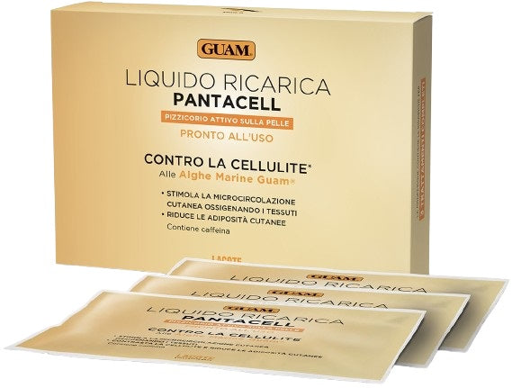 Nella confezione troverai il liquido per ricaricare PantaCell con attivi anticellulite intensivi: Alghe Marine Guam, Sali del Mar Morto, Complesso Anticellulite e Caffeina dall'effetto lipolitico.