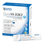 Contiene 2 diversi microrganismi probiotici appartenenti al genere Lactobacillus utili a favorire l'equilibrio della flora intestinale. Grazie all’impiego di un processo produttivo brevettato, i 2 microrganismi probiotici contenuti in GunaVit D3K2 si presentano in forma microincapsulata e gastroprotetta. L’impiego di questa tecnologia migliora decisamente la capacità di sopravvivenza di tutti i microrganismi probiotici durante il transito gastroduodenale, consentendo in tal modo il raggiungimento dell’intestino da parte di un elevato numero di microrganismi vivi e vitali.