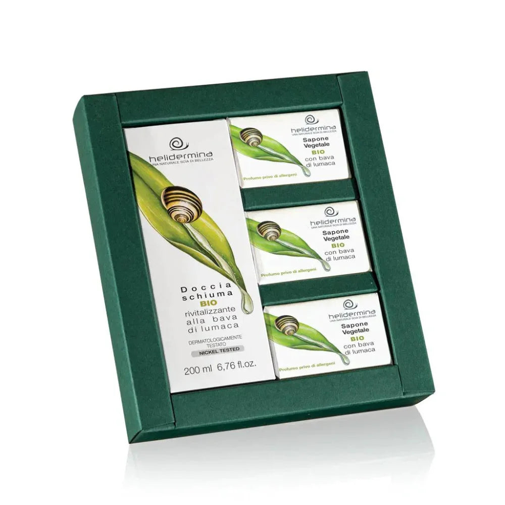 Helidermina - Cofanetto Regalo Doccia Schiuma 200ml & 3 Saponi 50g Alla Bava Di Lumaca