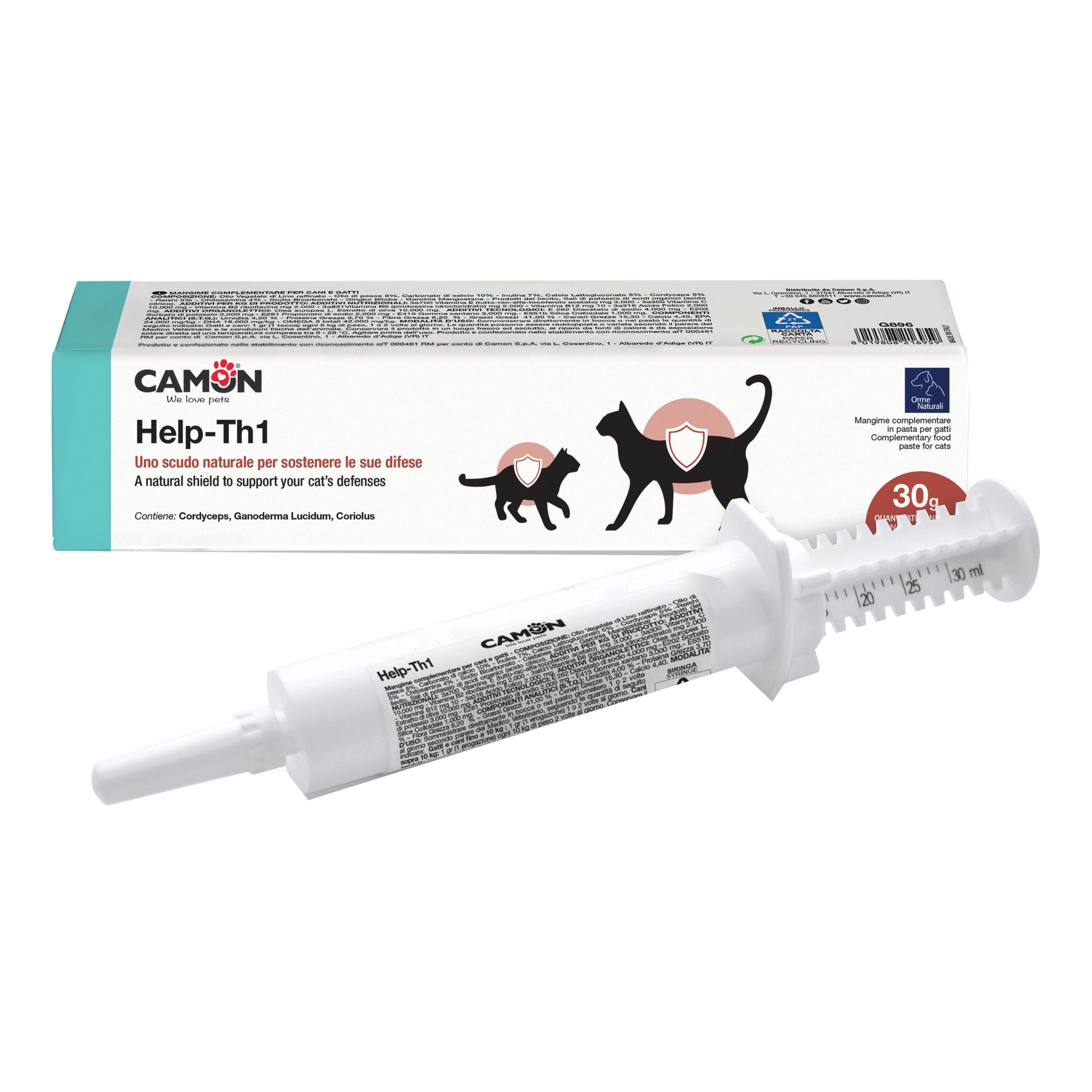 Help-TH1 è un alimento complementare pensato per sostenere le difese immunitarie di gatti e gattini. Help-TH1 contiene Cordyceps, Ganoderma Lucidum e Coriolus, oltre a tè verde, utilizzato tradizionalmente come ricostituente in virtù del suo contenuto in polifenoli.