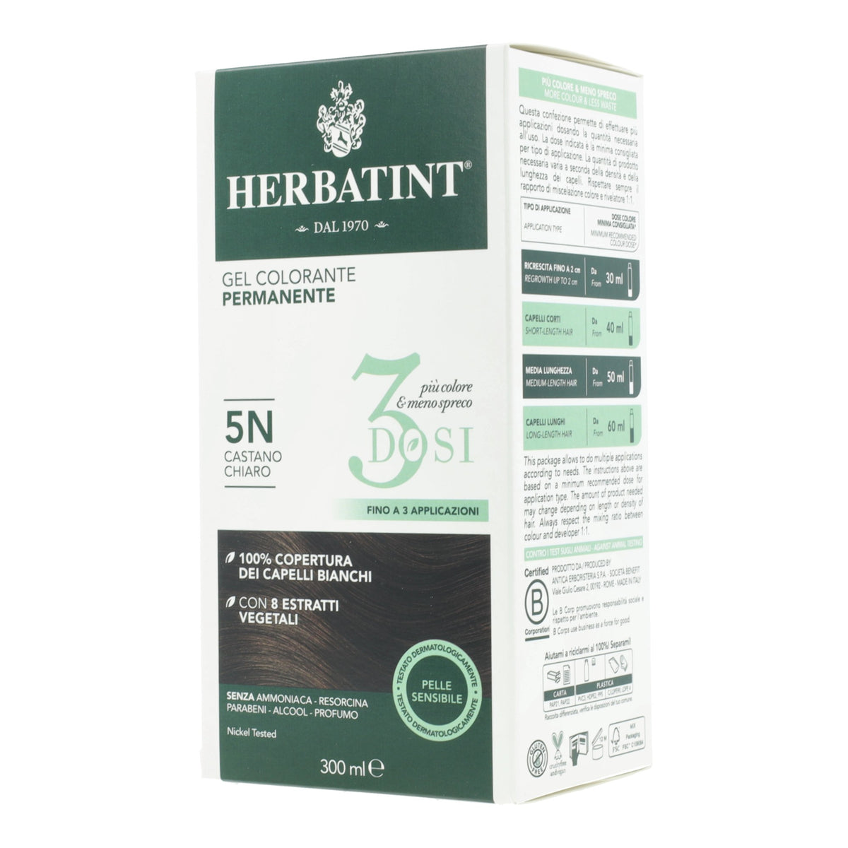 Herbatint Gel Colorante Permanente Senza Ammoniaca 3 Dosi 5N Castano Chiaro 300ml