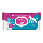 Salviette profumate in tessuto resistente, umidificate con un agente idratante, emolliente e protettivo, che rispettando il pH naturale, deodorano, e lucidano il manto di gatti, cani e cuccioli.