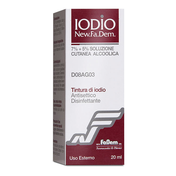 AvvertenzePer esclusivo uso esterno. Non ingerire. Evitare il contatto con gli occhi. L’applicazione prolungata può provocare irritazione e causticazioni della superficie trattata, pertanto il medicinale non deve essere utilizzato per trattamenti prolungati. Il medicinale deve essere applicato solo su cute integra e non lesa, poiché oltre a causare irritazione, ritarda la cicatrizzazione di ferite e abrasioni. L’uso specie se prolungato può dare origine a fenomeni di sensibilizzazione. In tal caso interrompere il trattamento e adottare idonee misure terapeutiche. Per evitare l’assorbimento eccessivo di iodio, non coprire con bendaggi occlusive l’area della cute trattata. In caso di impiego per periodi prolungati su estese superfici corporee, su mucose o sotto bendaggio occlusivo, in particolare nei bambini e nei pazienti con disordini tiroidei, è necessario eseguire tests di funzionalità tiroidea. Poiché lo iodio può alterare la funzione della tiroide, si raccomanda di usare con precauzione in soggetti con patologie tiroidee, nei pazienti di età superiore ai 45 anni o con gozzo. In età pediatrica usare solo in casi di effettiva necessità e sotto controllo medico. Interrompere il trattamento almeno 10 giorni prima di effettuare una scintigrafia con iodio marcato. A seguito del trattamento potrebbero risultare alterati gli esiti dei test di funzionalità tiroidea, soprattutto nei neonati prematuri. Informazioni importanti su alcuni eccipienti: nessuna in particolare.