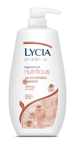 Bagnodoccia dalla formula arricchita con ingredienti attivi dermocosmetici ad azioni specifiche studiate per rispondere alle esigenze delle diverse tipologie di pelle. Lycia Nutritious deterge e nutre anche le pelli più secche. 95% di ingredienti di origine naturale e attivi funzionali di ultima generazione per garantire massima efficacia e delicatezza sulla pelle: