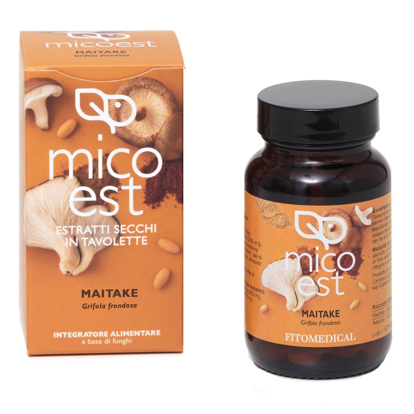 Maitake [Grifola frondosa (Dicks.) Gray] sporoforo e.s. al 30% in polisaccaridi e al 20% in beta-glucani 57,2%; stabilizzanti: cellulosa microcristallina (gel di cellulosa), calcio fosfato; antiagglomeranti: sali di magnesio degli acidi grassi di origine vegetale, diossido di silicio.