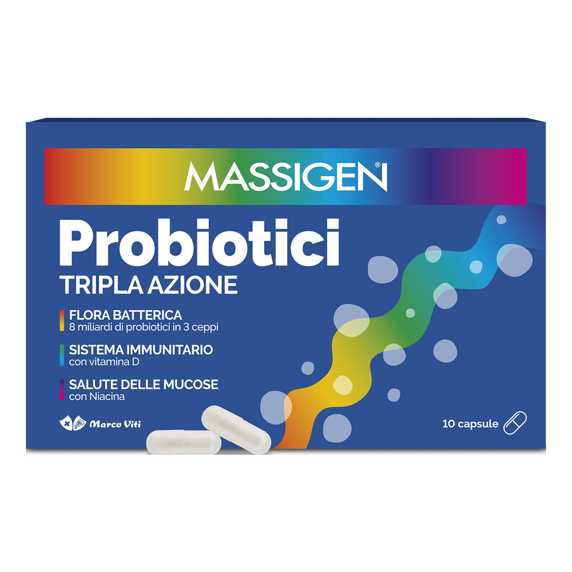 Integratore alimentare di fermenti lattici vivi, che favoriscono l'equilibrio della flora batterica intestinale che può essere alterata da antibiotici, fattori alimentari e organici. Nella formulazione sono presenti tre ceppi, scelti dopo un'accurata selezione. La presenza di niacina contribuisce a mantenere in salute le membrane mucose e la vitamina D aiuta il fisiologico funzionamento del sistema immunitario.