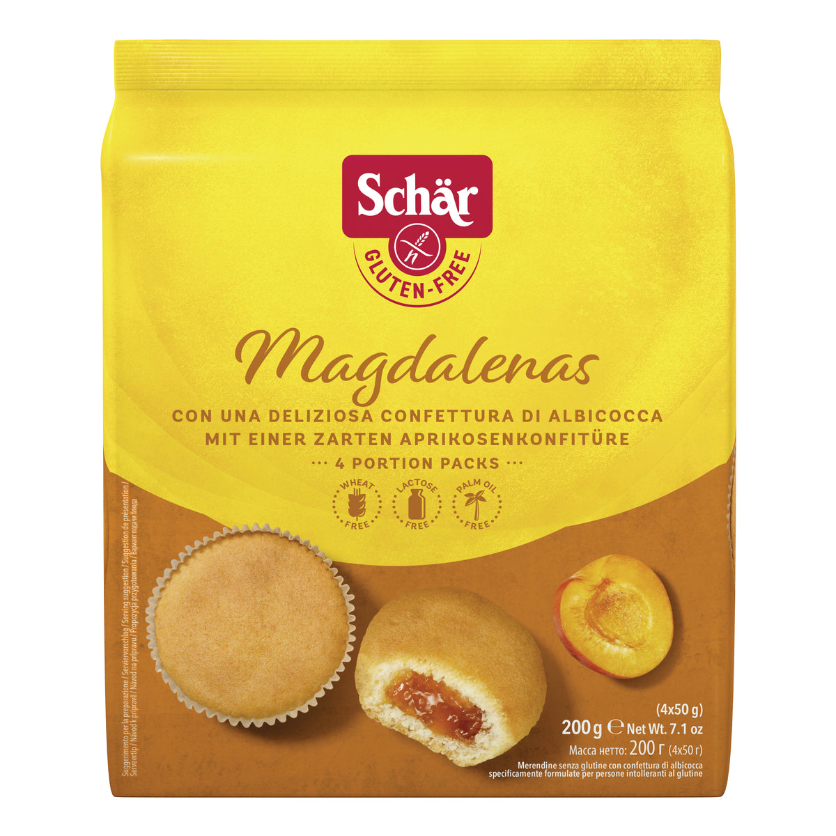 Confettura di albicocca 46% (sciroppo di glucosio-fruttosio, purea di albicocca, saccarosio; addensante: pectina; correttore di acidità: acido citrico), amido di frumento deglutinato, margarina vegetale (grasso di palma, acqua, olio di colza, sale; emulsionante: mono e digliceridi degli acidi grassi; acidificante: acido citrico; aroma naturale), acqua; stabilizzante: sorbitolo; emulsionante: mono e digliceridi degli acidi grassi; uova; agenti lievitanti: glucone delta lattone, bicarbonato di sodio; amido di riso; addensanti: idrossipropilmetilcellulosa, gomma di xantano; aromi naturali, bietola rossa, estratto di cartamo. Può contenere tracce di soia.