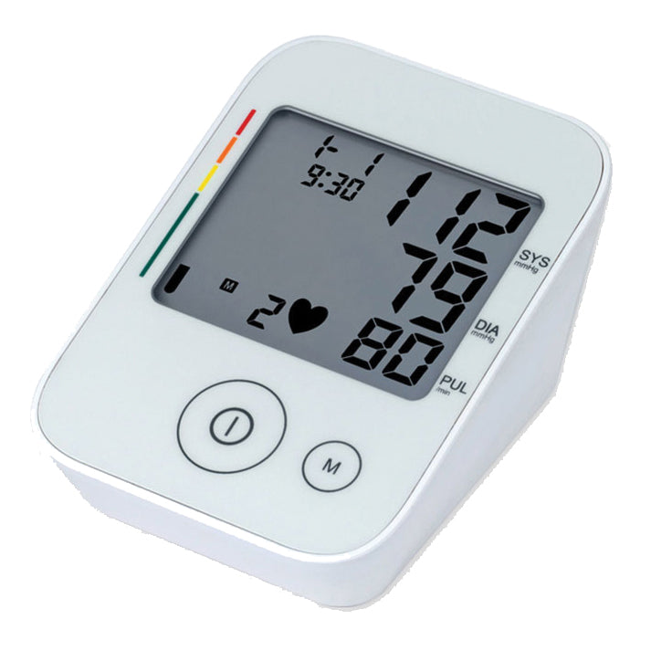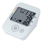 Sfigmomanometro digitale con ampio schermo LCD di facile lettura, indicatore di pressione OMS e rilevamento aritmia (iHB). Media di tutti i valori salvati e pressione sanguigna di mattina e sera degli ultimi 7 giorni, 4 memorie utenti con 30 spazi di memoria ciascuna, spegnimento automatico.