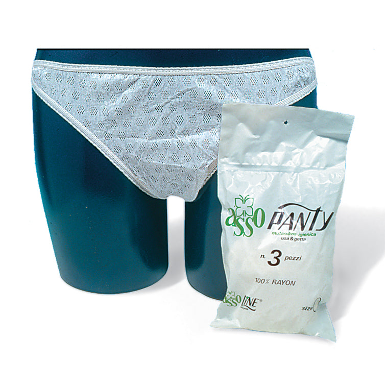 Mutande di carta usa e getta, disponibili in tre taglie: media, large e extra large.Formato