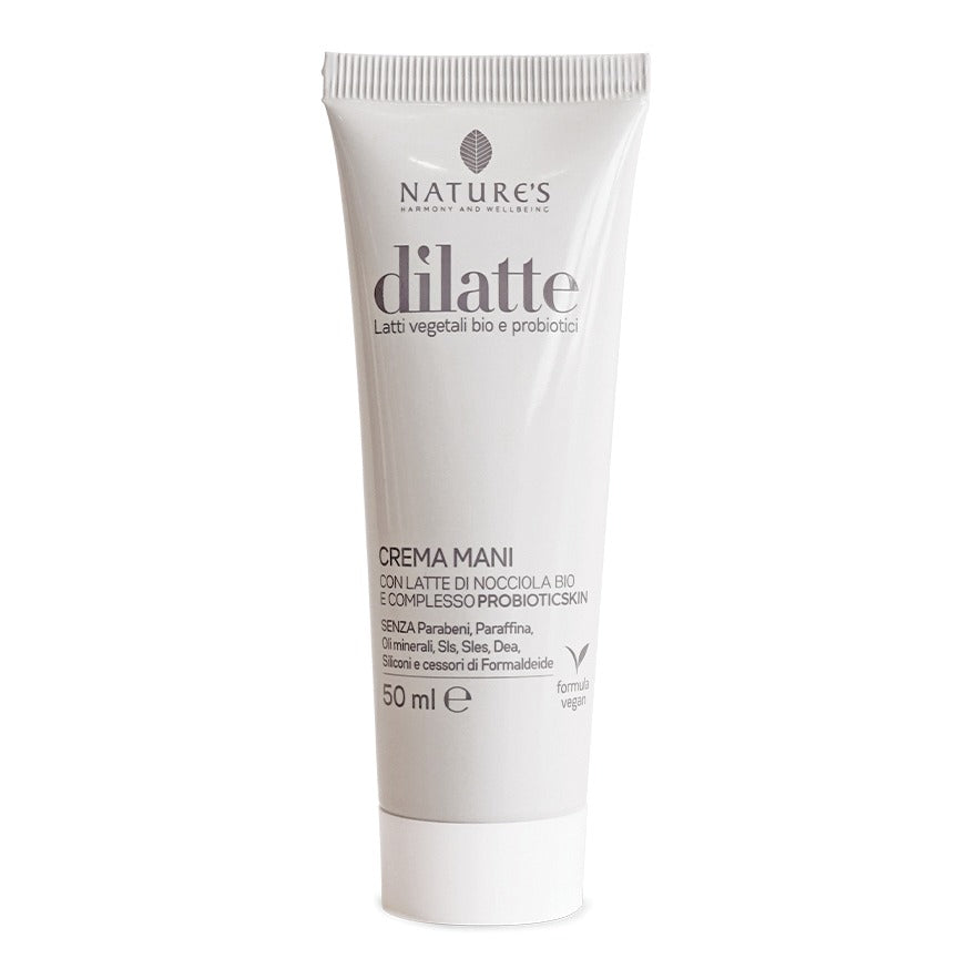 Morbida, vellutata, di rapido assorbimento. La Crema Mani Dilatte aiuta a salvaguardare l’equilibrio del microbioma cutaneo, rendendo la pelle più resistente alle aggressioni dei batteri e degli agenti fisici o chimici esterni, come inquinamento, raggi ultravioletti e detergenti aggressivi. Infonde un’immediata sensazione di comfort e benessere e grazie alla sua delicata profumazione, priva di allergeni, è adatta a tutta la famiglia. Lascia le mani morbide e vellutate, svolgendo un’azione protettiva e aiutando a contrastare il precoce invecchiamento della pelle.