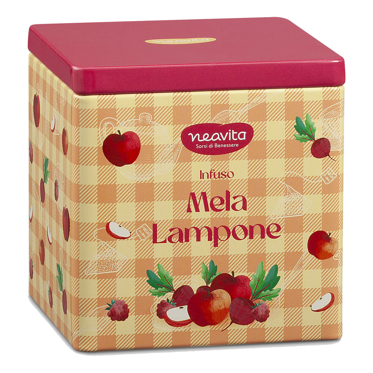Neavita Happy Fruits - Infuso Mela e Lampone Bio In Square Tin Giallo 10 Filtroscrigno