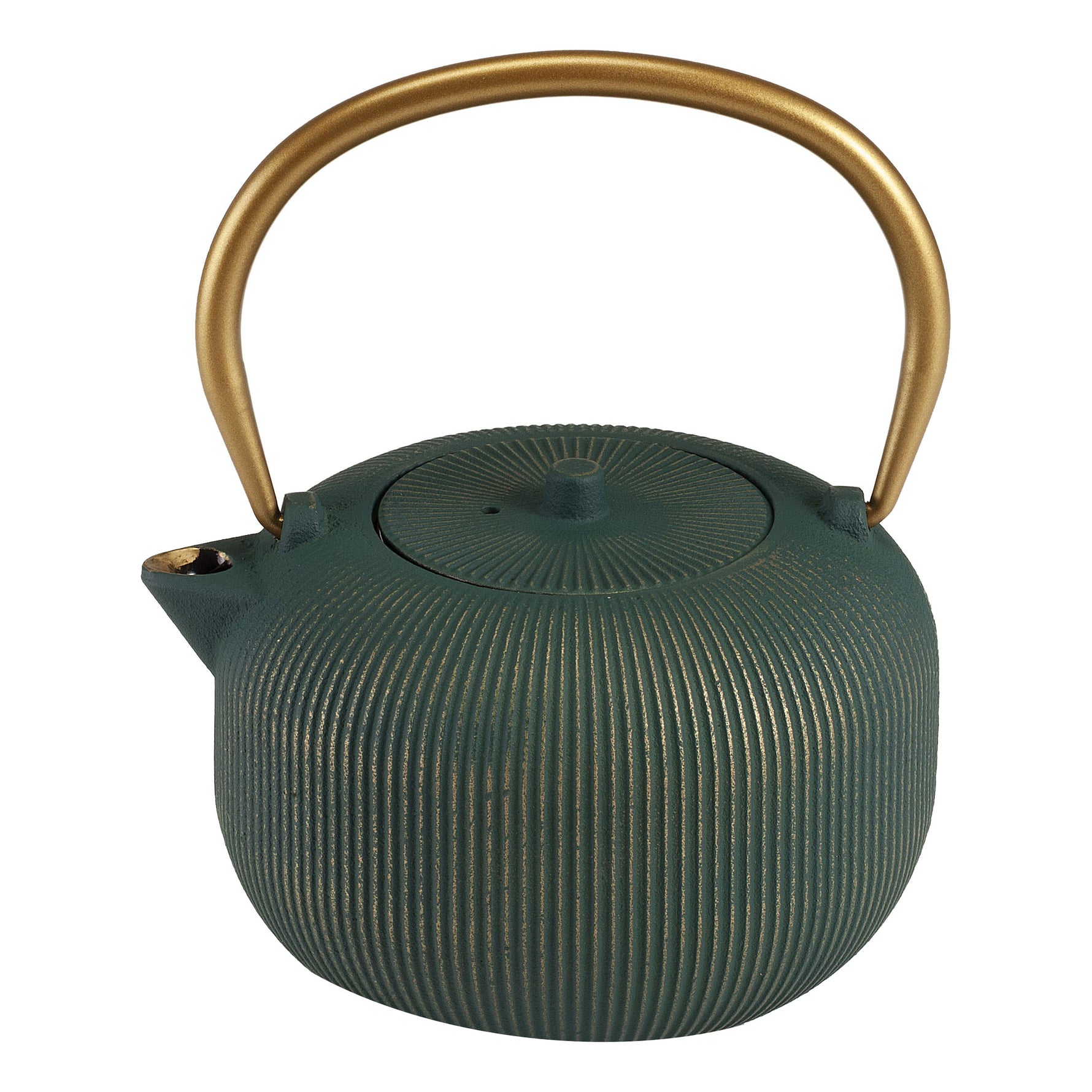 DescrizioneTeiera in ghisa con filtro in acciaio per tisane in foglia.