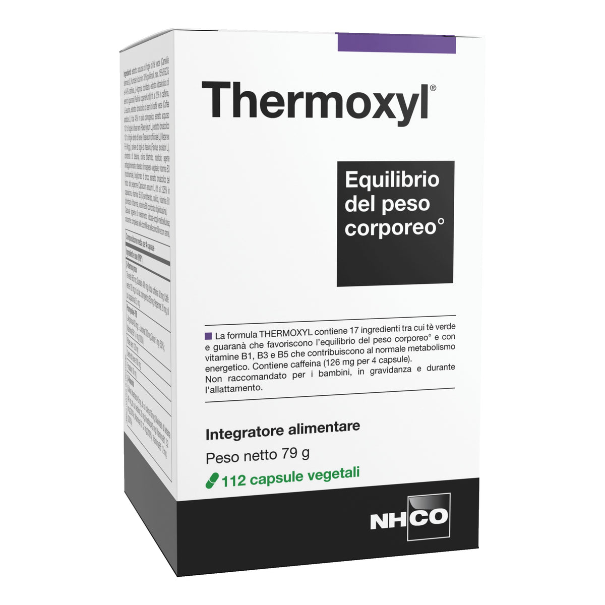 Thermoxyl® è un integratore alimentare sviluppato da NHCO Nutrition® pensato per favorire l'equilibrio del peso corporeo, sostenere il metabolismo energetico e aiutare il drenaggio dei liquidi corporei. A base di guaranà, tè verde, caffè verde, zinco, vitamine del gruppo B e aminoacidi, è ideale per chi segue programmi di controllo del peso o desidera migliorare la propria composizione corporea.