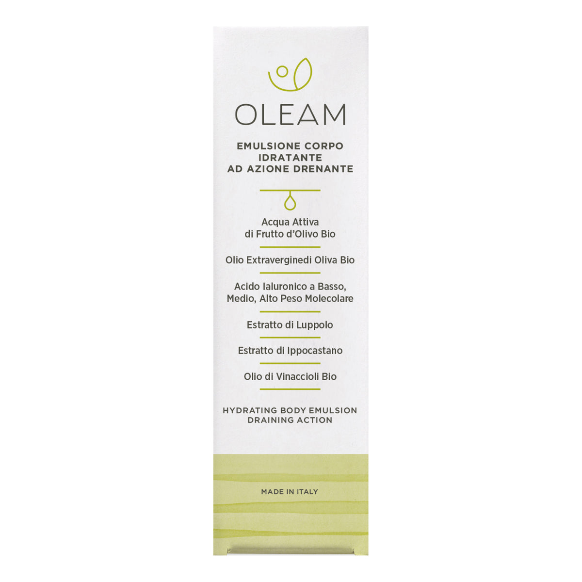 Emulsione profumata, anti-age, drenante e idratante, aiuta a trattare gli inestetismi cutanei. Arricchita di acqua di frutto di olivo con effetto antiossidante, rende la pelle morbida e compatta. Questa leggera emulsione è stata ideata con componenti naturali come l'estratto di luppolo, idratante ed antiage e l'estratto di ippocastano, ad azione drenante, che in sinergia aiutano a trattare gli inestetismi cutanei. Arricchiscono la formulazione l'acido ialuronico, la betaina e l'olio di vinaccioli bio, idratanti, antiossidanti e nutrienti, che aiutano a rendere la pelle compatta.